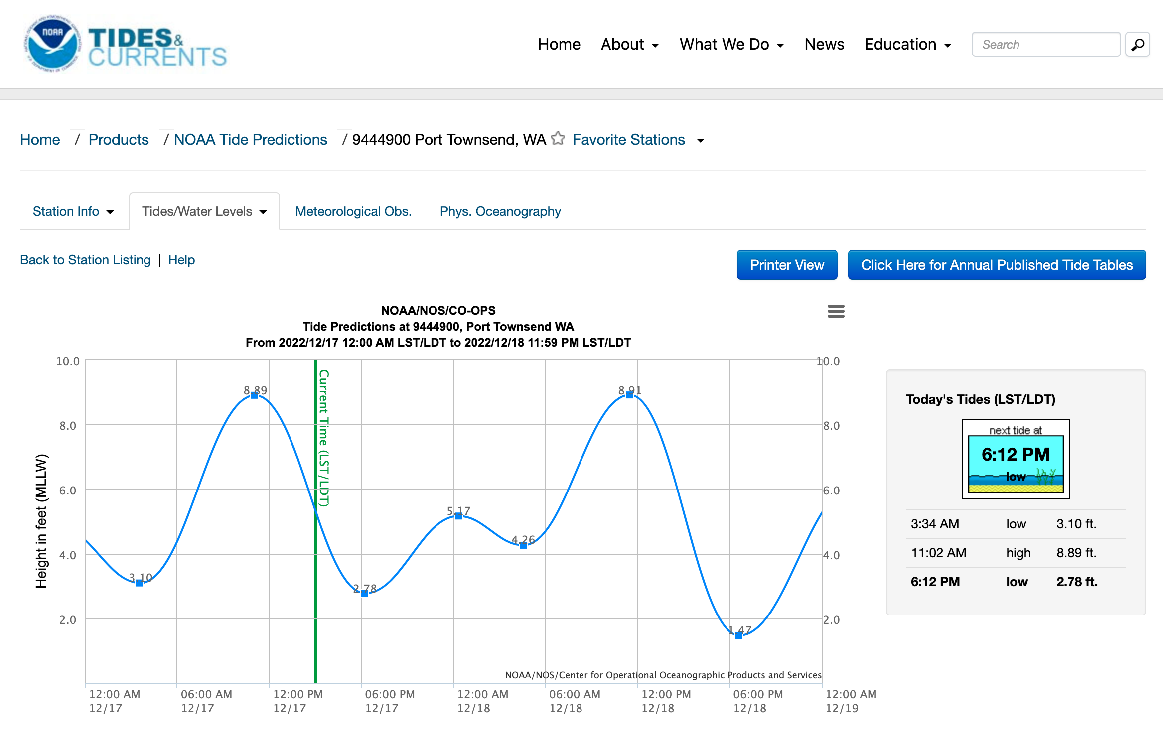 NOAA station 9444900 Port Townsend - Located approximately 6.7 miles due north of Port Hadlock Marina at the Port Townsend ferry terminal.